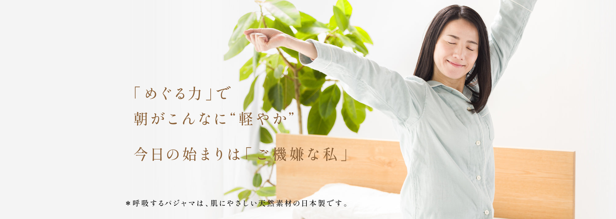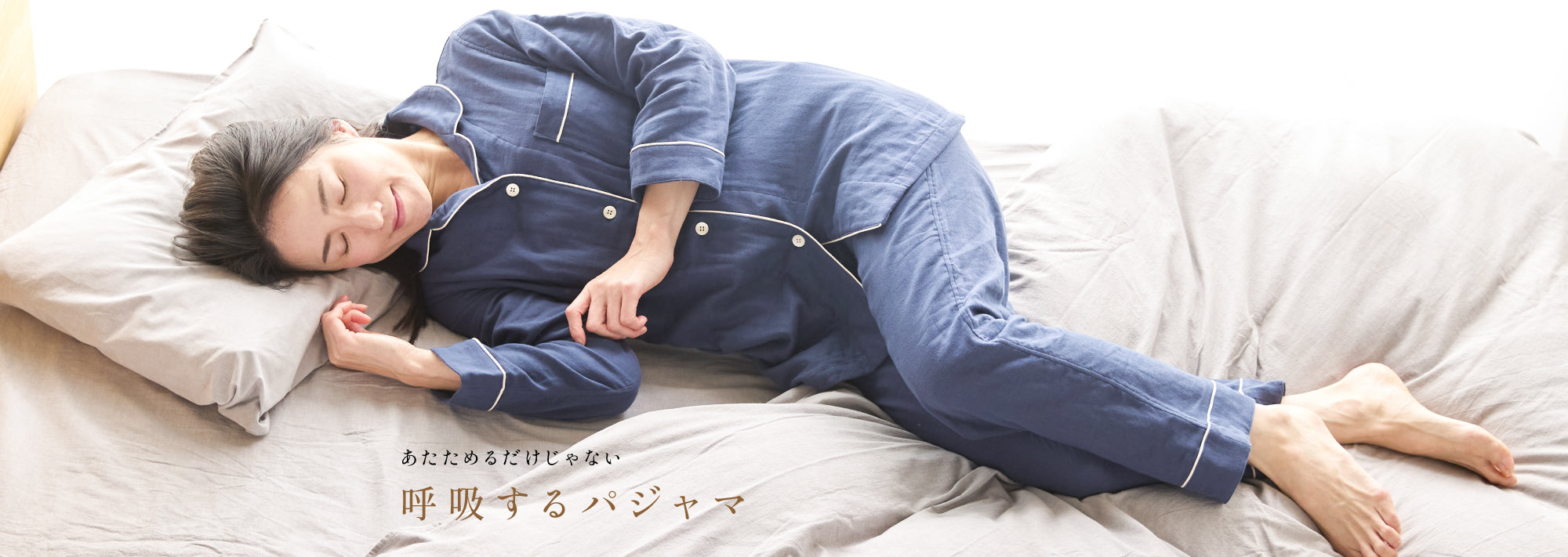 日本の縫製工場で細部までこだわり丁寧に作った天然素材100%のパジャマに、めぐりを整える機能性素材(メディカーボン)を取り入れた他にはない商品です。